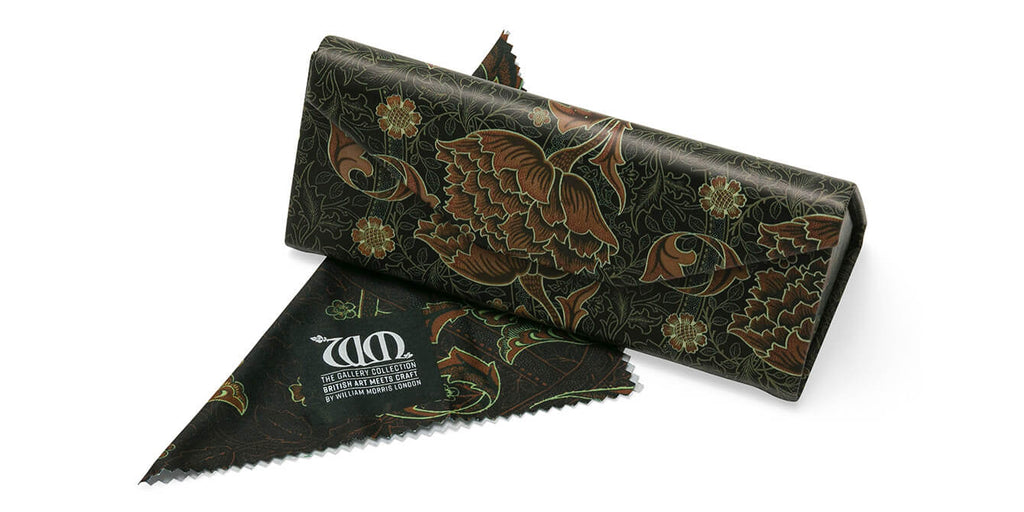 This flat-folding glasses case with matching polishing cloth is from 'The Gallery Collection' a joint collaboration with William Morris, London, a leading British independent eyewear firm and The William Morris Gallery, the museum and home of the famous designer.